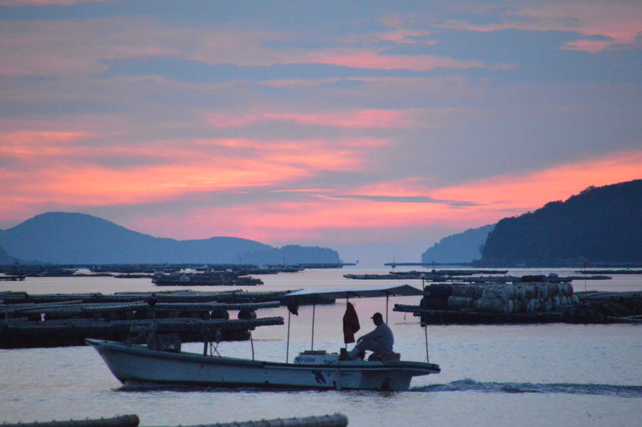 虫明海域は気候穏やかな瀬戸内海の中でも特に良質の牡蠣を育てるのに適しており、牡蠣の養殖がさかんな地域です。